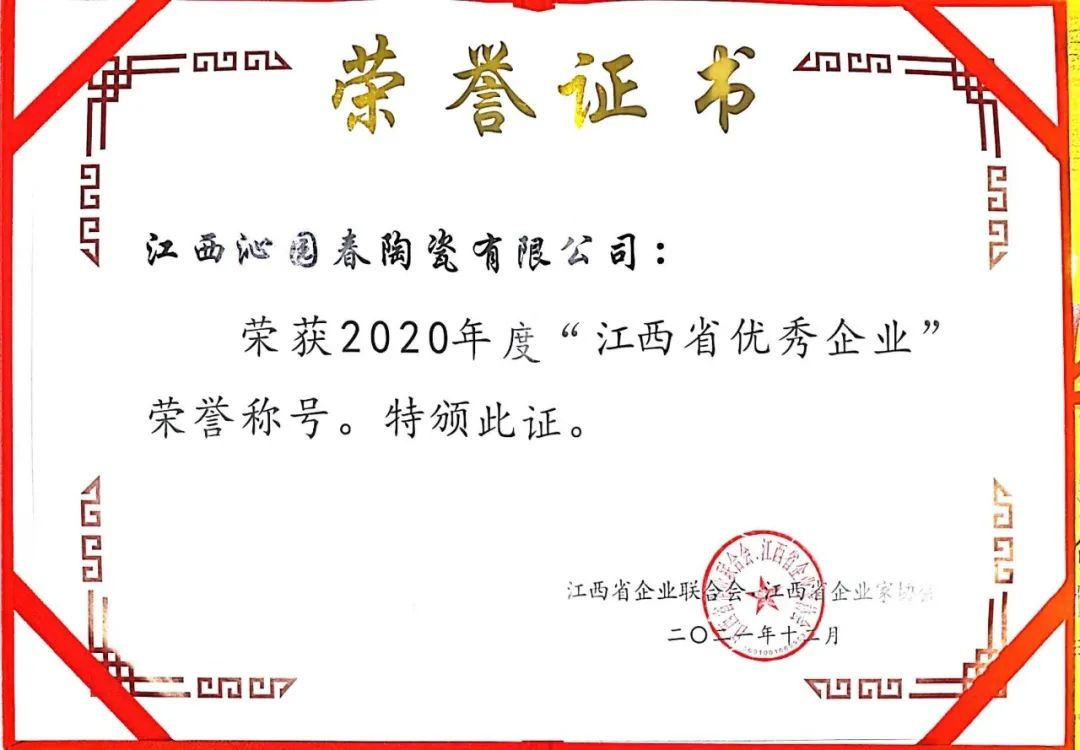 载誉前行 | 沁园春陶瓷,再次荣膺“江西省优秀企业”荣誉称号!