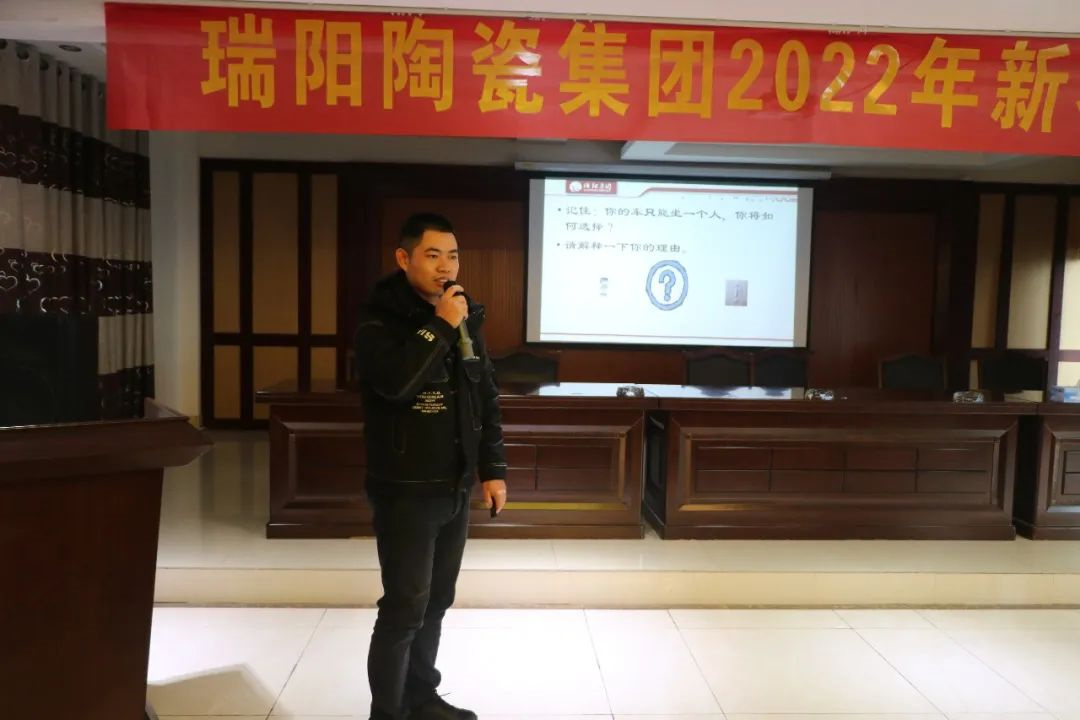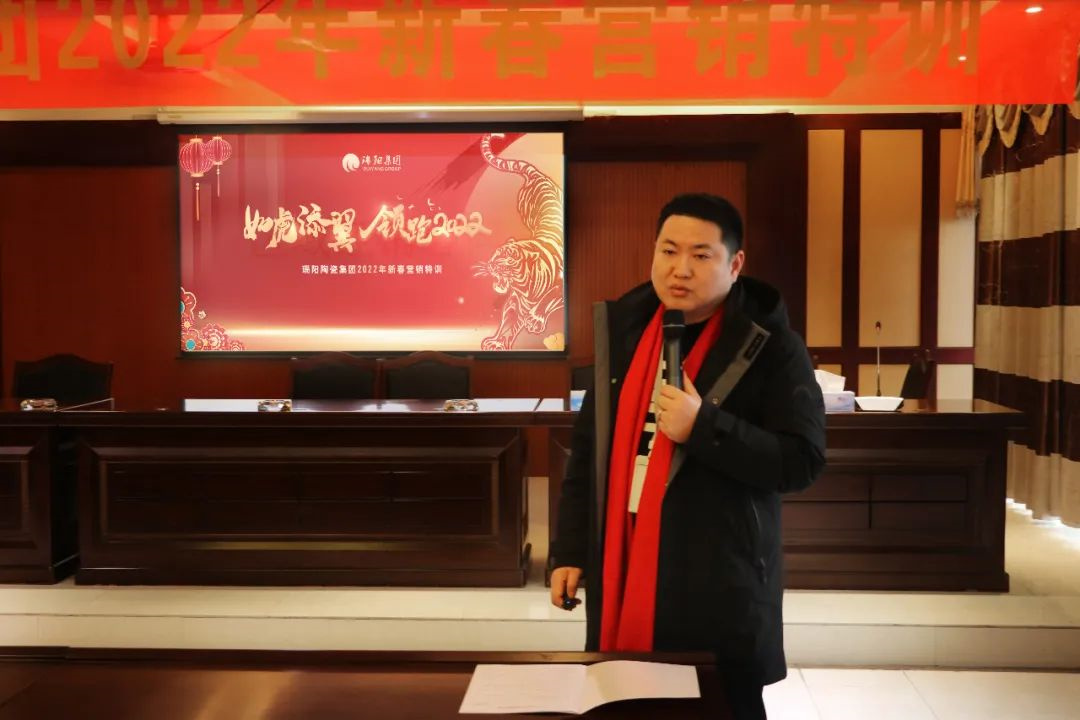 ▲全员参与现场互动 沁园春技术总监李建华分享 ▲图为沁园春技术总监李建华分享 会议第二项,由沁园春生产技术总监李建华分享生产技改及品质提升的成果,李总表示2021年底,沁园春生产基地投入近亿元,先后从原料球磨、窑炉烧成曲线、喷墨机升级、抛光系统等10余个项目进行升级改造,此次年终技改,将会大大提升设备能效,稳定产品品质,为营销中心2022年实现全年目标保驾护航。 沁园春研发总监何斌分享 ▲图为沁园春研发总监何斌分享 会议第三项,由沁园春研发总监何斌对“国潮岩素”新品进行培训,何总从市场流行趋势到国潮岩素的工艺技术、产品卖点、花色创意等多方面进行讲解,通过此次对国潮岩素新品的宣导,更加提升了新品认识、增强了终端推广的信心。 营销助理陈威分享 ▲图为营销总经理助理陈威分享 会议第四项,由营销总经理助理陈威对营销中心日常工作规范进行系统而全面的讲解,陈助表示,2022年,公司将进一步梳理优化制度流程,提升团队执行力,并严格按照规章制度规定和流程开展业务,提升全员工作效率和协作能力,为打造一只‘虎狼’之师。 培训测试 最后,为了检验此次培训的成效,由营销副总经理郑标对全体成员进行培训测试。旨在学以致用、巩固培训效果,能够更好的开展各项工作,提高专业的服务水平,助力终端经销商。 一年之计在于春,笃行实干启新程。新的一年,新的起点,全体瑞阳人将以更加坚定的信念和昂扬的斗志,以虎虎生威的雄风、生龙活虎的干劲、气吞万里如虎的精神,投入到崭新的工作中,2022年铆足“虎”劲,开好头,起好步,携手创造瑞阳新未来。